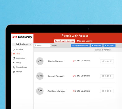 Manage employee access to your business across multiple locations with unique User Codes. Remotely add or delete codes with ease without calling the alarm company or using the keypad.